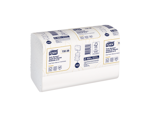 Toalla de Manos Doblada en Z, blanca hoja triple 150 Hojas x fajo